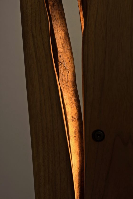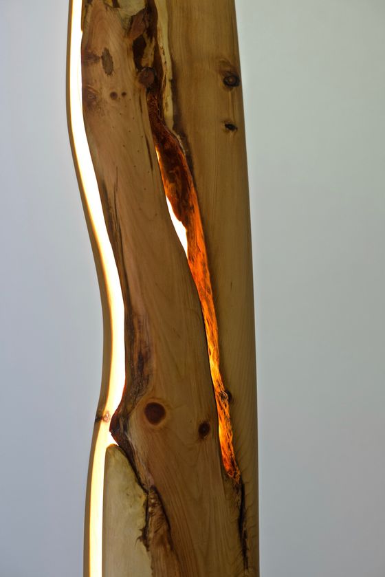 Die LEDs befinden sich in einem handgebogenen Rahmen, der so flexibel ist, dass er an die Risse und die Kontur der Holzbohlen angepasst werden kann. Dadurch entsteht ein gleichmäßiges Lichtbild.